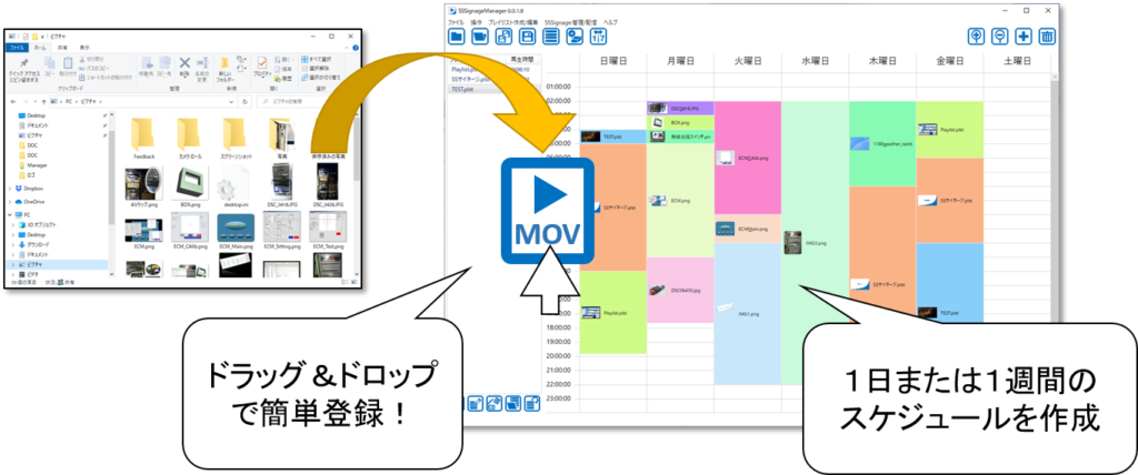 無料のスケジュール作成・配信ソフト「SSSignage Manager」が付属しています。